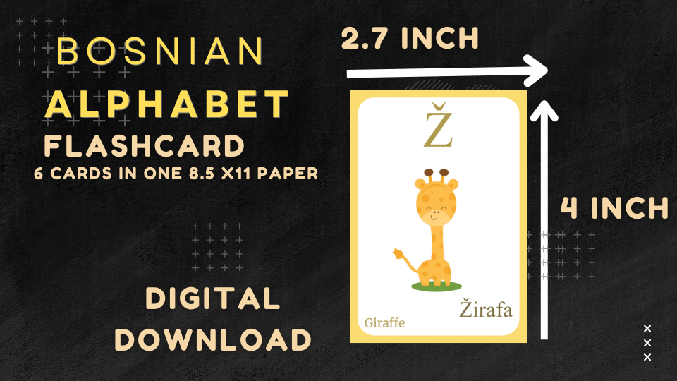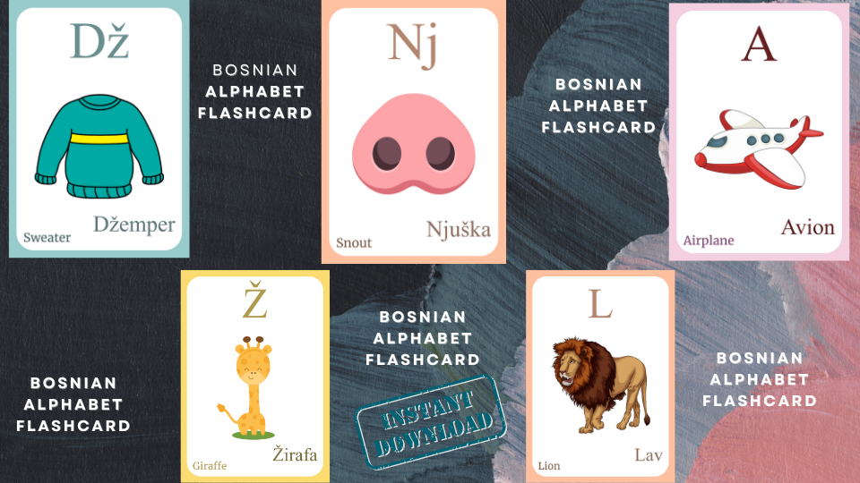 BOSNIAN Alphabet FLASHCARD with picture, Learning BOSNIAN, BOSNIAN Letter Flashcard,BOSNIAN Language,Pdf flashcards, Digital Download